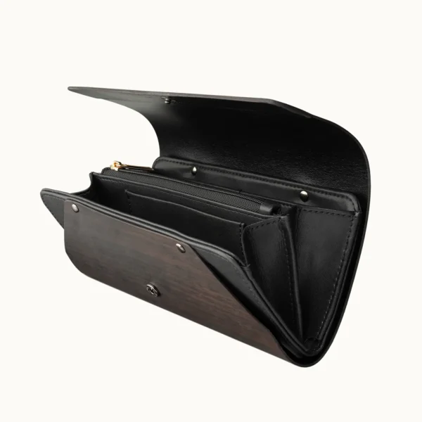 將削成薄片的天然實木與皮革結合,讓樹革在擁有柔軟身段的同時保留了木紋最有魅力的樣貌。內層使用循環皮革讓穩定度大幅提升,使用期限更長久更有韌性。